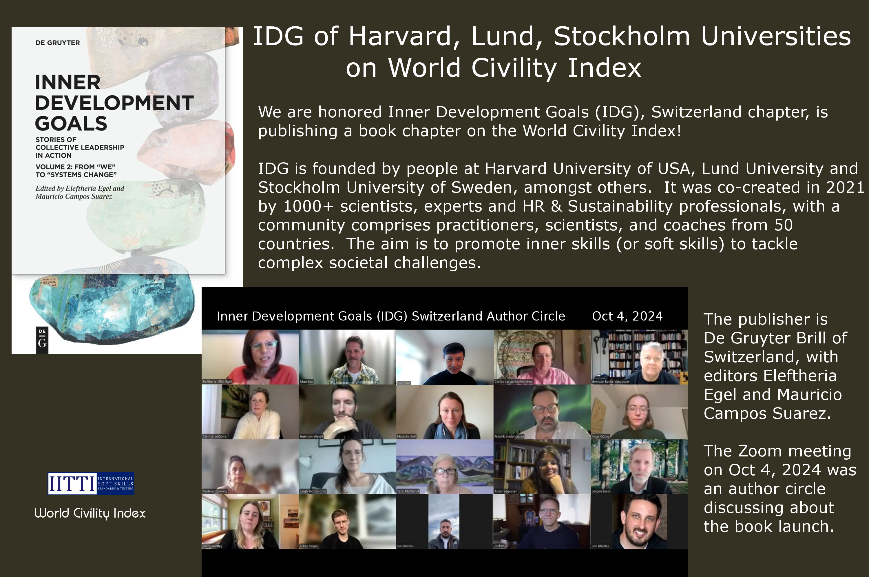 We are honored Inner Development Goals (IDG), Switzerland chapter, is publishing a book chapter on the World Civility Index!