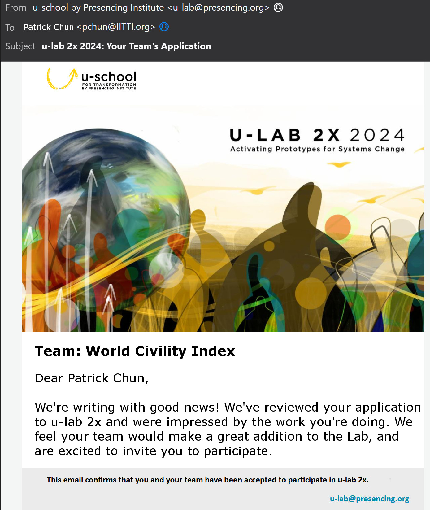 IITTI World Civility Index just got accepted into the Massachusetts Institute of Technology (MIT) Presencing Institute U-Lab.
